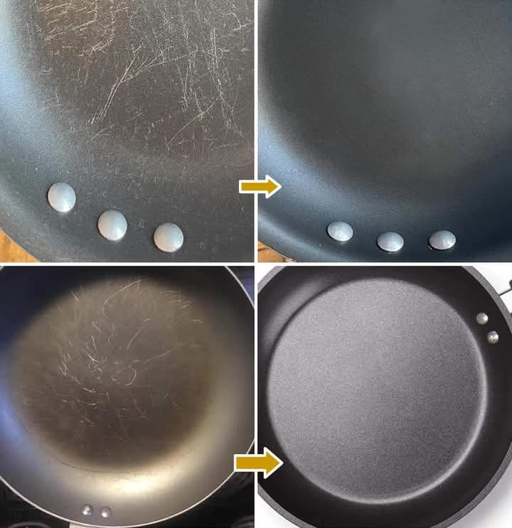 Deze weinig bekende truc is zeer effectief om pannen die veel aangekoekt vet bevatten en niet loskomen, er weer als nieuw uit te laten zien.