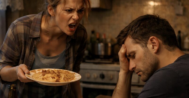 Sveta handelde als een automaat. De zevende, achtste, negende kotelet werden vieze strepen op keukenoppervlakken. De tiende en elfde vlogen op de vloer en lieten vette klappen achter op het lichte laminaat. Er bleef er nog één over: de twaalfde. De meest goudbruine, de meest “appetijtelijke”. Sveta pakte hem tussen twee vingers, liep naar Igor — die nog steeds in shock stond en zijn gezicht probeerde schoon te vegen — trok zijn kraag naar achteren en duwde de kotelet met kracht in zijn nek, onder zijn shirt.