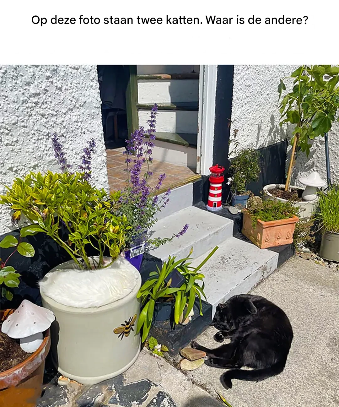 De afgelopen weken circuleert er online een simpele foto die meteen de aandacht trekt: een zwarte kat die vredig in de zon ligt te rusten, klassieker kan het niet. Maar het onderschrift vermeldt twee katten. De nieuwsgierigheid is direct gewekt: waar verstopt de tweede zich? Dit soort visuele mysterie is aantrekkelijk omdat het onze speelse geest prikkelt. We zoomen in en onderzoeken elk hoekje en gaatje alsof we op zoek zijn naar een vergeten schat op zolder. En geef toe: als we denken iets gevonden te hebben, is de voldoening bijna net zo groot als het perfect uitvoeren van een recept in één keer.