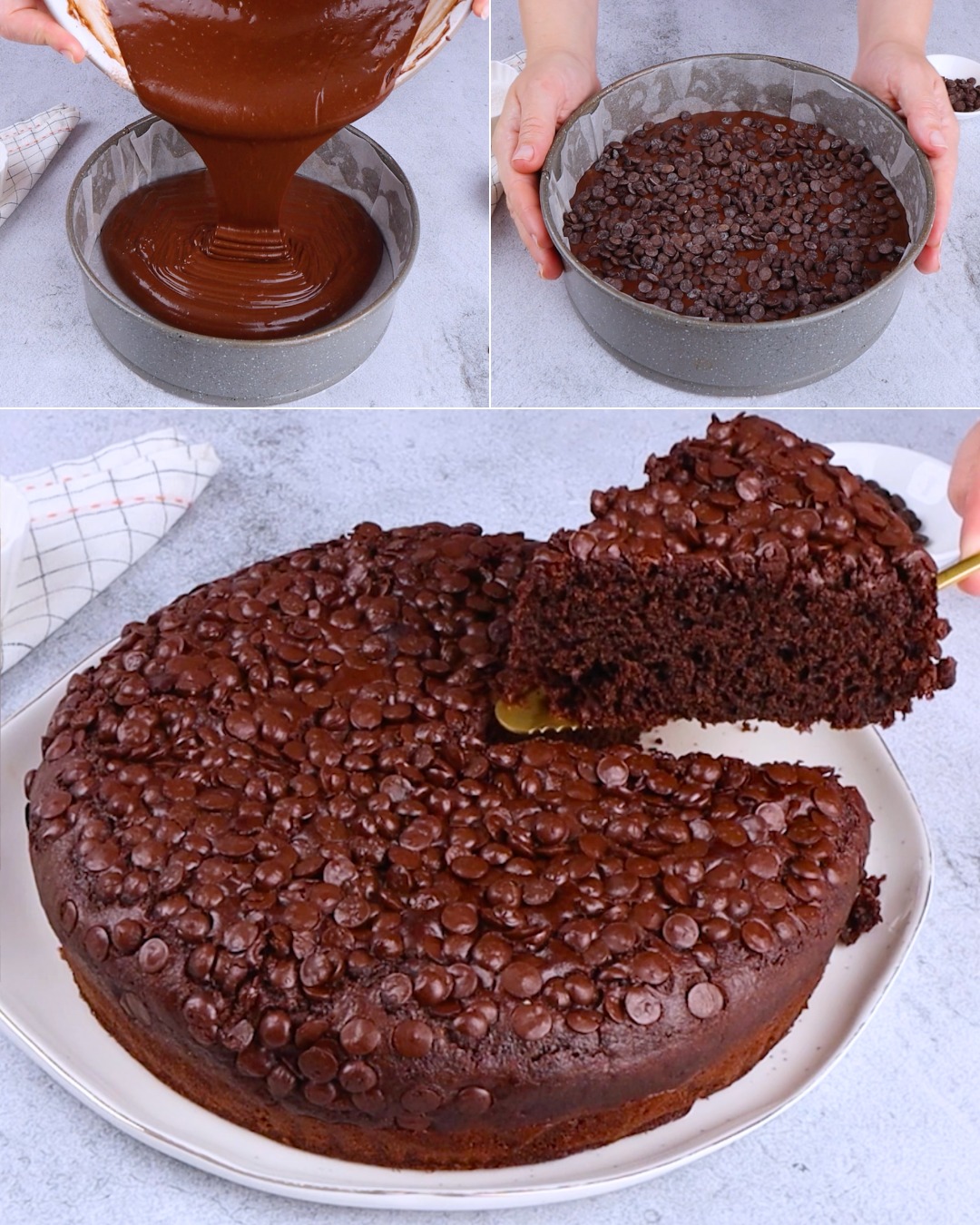 Chocoladetaart zonder eiIngrediëntenFarina 00 : 240 gOngezouten cacaopoeder : 60 gBakpoeder : 16 gCourgette : 190 gZout : 1 snufjeKoffie met melk : 280 mlZaadolie : 70 mlSinaasappelschil : 1Chocoladechips : qsVoor de mal Volgende→