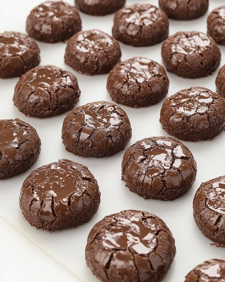 Deze chocoladekoekjes met een gekreukelde textuur zijn heerlijk op zichzelf, maar ze passen ook perfect bij een glas koude melk of een warme kop koffie. Voor een extra verwenmoment kun je ze serveren met een bolletje vanille-ijs of een schaaltje verse bessen. Ze vormen een prachtige aanvulling op een dessertplateau, zeker in combinatie met andere koekjes of kleine gebakjes.