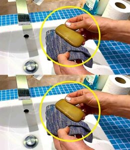 Doe zeep in een oude sok – het lost een van de grootste badkamerproblemen op