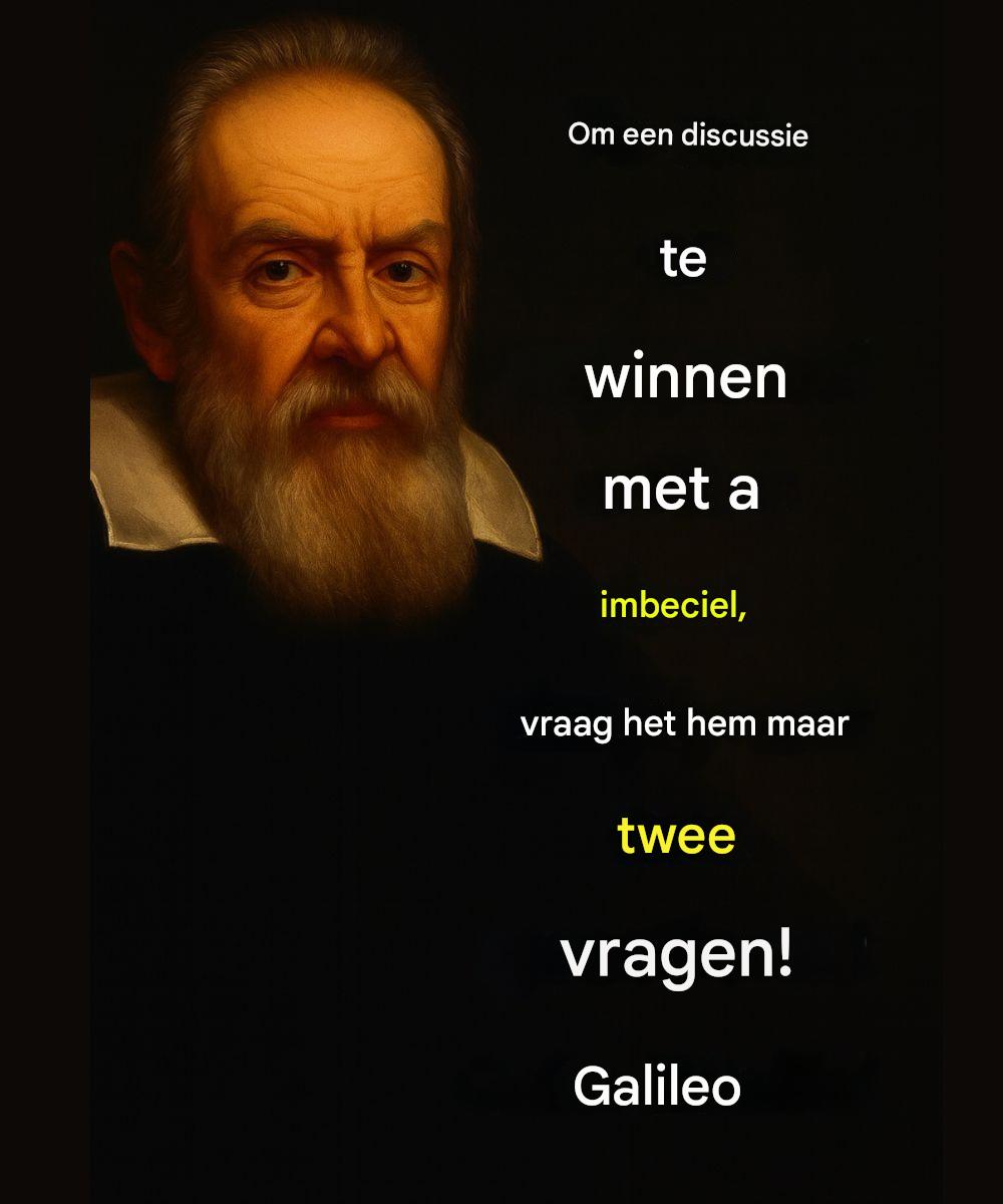 Galileo bracht niet alleen een revolutie teweeg in de wetenschap; hij liet ons ook een meesterlijke les na in hoe om te gaan met onwetendheid: hoe je dwazen kunt overtuigen zonder je geduld te verliezen. In de wereld van vandaag, waar iedereen zich verplicht voelt om gelijk te hebben, is zijn advies actueler dan ooit: “Ga nooit in discussie met een dwaas; hij zal je naar zijn niveau trekken en je met zijn ervaring verslaan.”