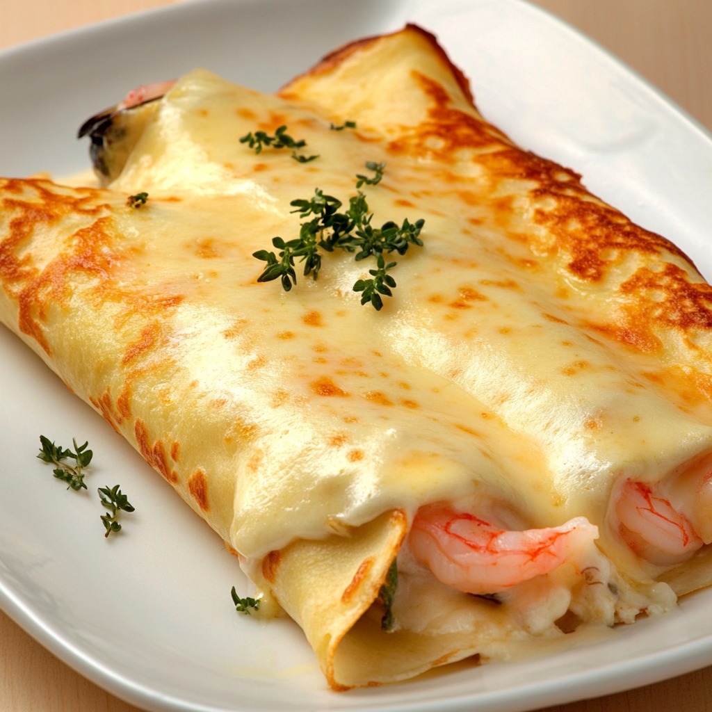 Garnalen- en zeevruchtengratinpannenkoeken