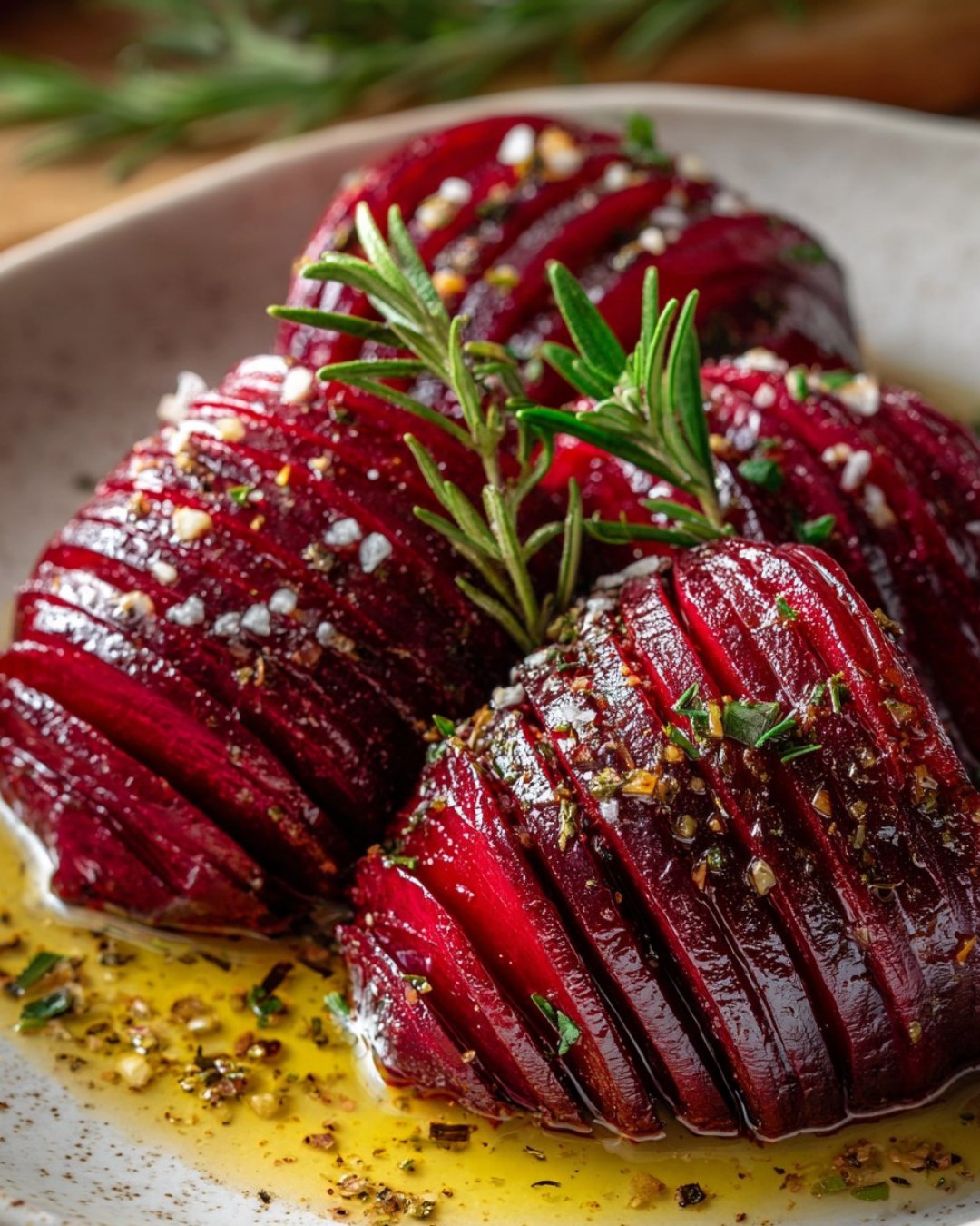 Dit gerecht is meer dan zomaar een bijgerecht: het is een culinair pareltje. De bieten worden langzaam geroosterd in de oven, waardoor ze hun natuurlijke zoetheid en aardse smaak volledig kunnen onthullen. Het geheel wordt afgemaakt met aromatische knoflookboter en kruiden. Een recept dat verleidt door zijn eenvoud, maar toch een vleugje verfijning behoudt, waardig aan grootmoeders kookkunst. De combinatie van malse groenten, delicate geroosterde aroma’s en de onmiskenbare smaak van knoflook maakt dit gerecht een must-have op elke tafel. Als bijgerecht bij vlees of vis, of als vegetarisch hoofdgerecht met feta of yoghurt, past het bij elke gelegenheid en elk seizoen. Het is gemakkelijk te bereiden en kan heerlijk van tevoren worden bereid. Terwijl de bieten koken, vult de geur van kruiden en boter de keuken, waardoor een warme sfeer ontstaat die doet denken aan familietijd.