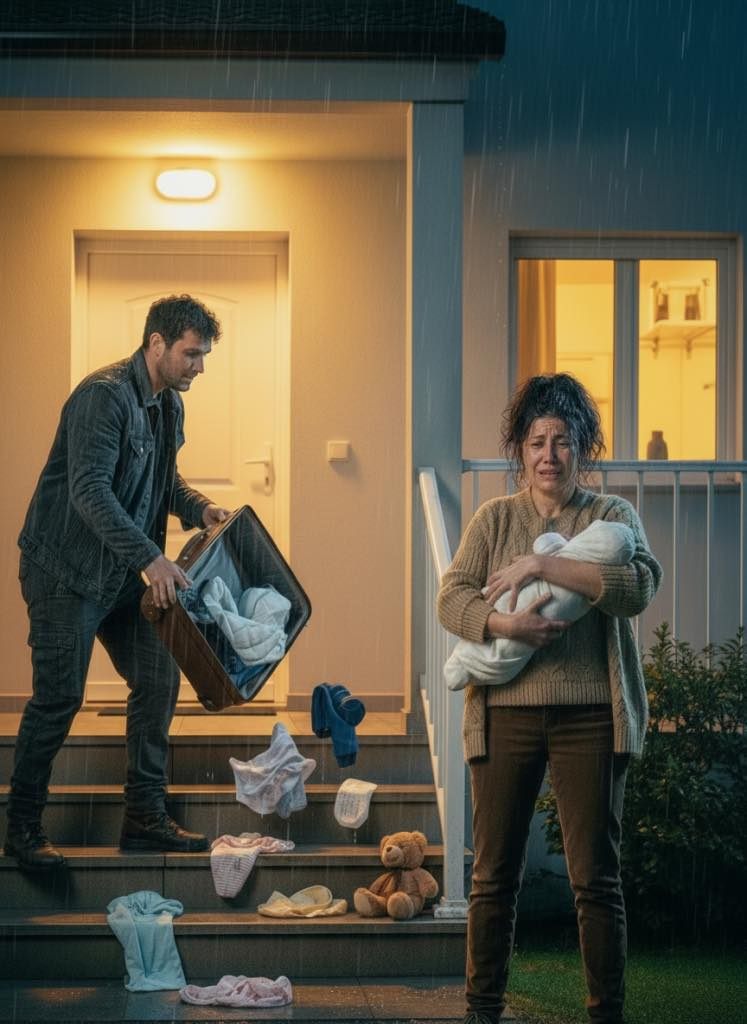Hij greep de enige koffer die hij haastig had ingepakt en gooide die van de trap. De koffer ging open toen hij de grond raakte. Luiers, babykleertjes en een blik flesvoeding vielen op de natte vloer.