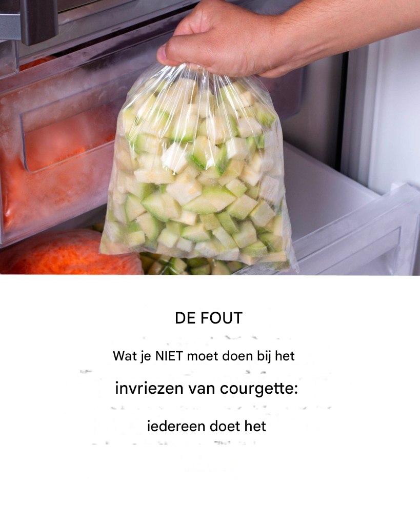 Hoe courgettes in te vriezen: alle methoden voor optimale bewaring4. Vries gekookte courgettes in.Ideaal voor: kant-en-klare bijgerechten, vullingen, snelle pastaGekookte courgettes, eventueel met ui, tomaat of andere groenten, kun je invriezen.Suggestie: Zie het vervolg op de volgende pagina. Volgende→