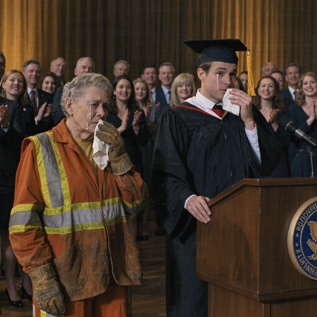 Ze maakten me altijd belachelijk omdat ik de zoon van een vuilnisman ben. Maar tijdens de diploma-uitreiking zei ik maar één zin… en iedereen werd stil en barstte in tranen uit…