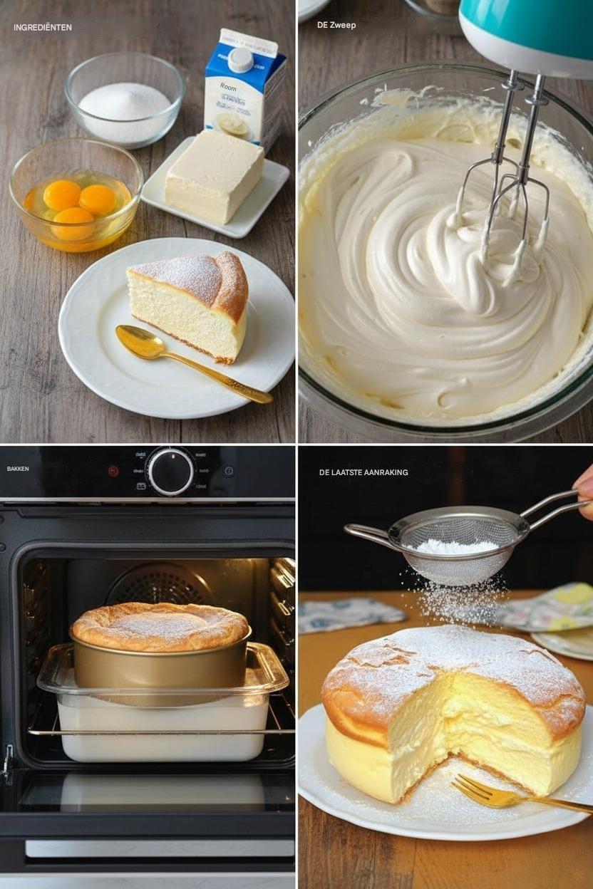 Inleiding: Wolkencake is een buitengewoon dessert dat lichtheid en smaak combineert, ondanks dat het volledig meelvrij is.      Het recept is al generaties lang in mijn familie doorgegeven en de geschiedenis van deze cake gaat terug tot mijn overgrootmoeder.      Hoewel het misschien ongebruikelijk lijkt, heeft de eenvoud en de onmiskenbare smaak al veel harten veroverd.      Met deze versie kunt u genieten van de klassieke, huisgemaakte smaak zonder u zorgen te hoeven maken over gluten.      Ingrediënten: 6 eieren 200 g suiker 200 g boter 1 theelepel vanille-extract 200 g mascarpone of ricotta 2 eetlepels citroensap Een snufje zout Bereiding: Scheid de eiwitten van de eidooiers in een kom.      Klop de eiwitten met een snufje zout stijf.      Eimengsel: Klop in een aparte kom de eidooiers met de suiker tot een licht en luchtig mengsel.      Voeg de gesmolten boter, mascarpone (of ricotta) en vanille-extract toe.      Meng goed.      Zie de volgende pagina voor meer informatie.