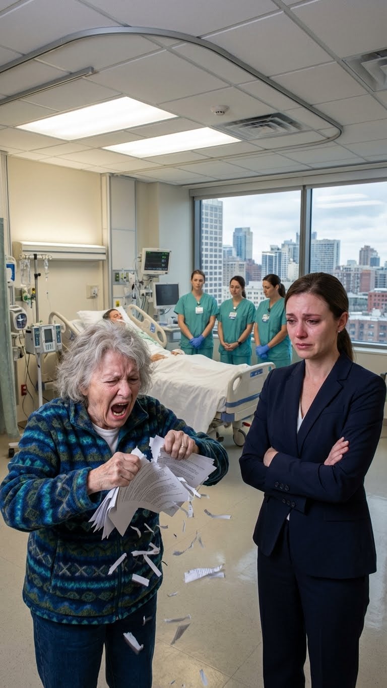 De geur van ontsmettingsmiddel prikte in mijn neusgaten terwijl de stem van mijn moeder door de ziekenhuisgang galmde. “Je laat je zus sterven!” schreeuwde ze, haar gezicht vertrokken van woede en verdriet. De verpleegkundigen keken op, maar niemand durfde in te grijpen. Ik stond als aan de grond genageld, met mijn rug tegen de muur, mijn trui stevig vastgeklemd als een kind. De handen van mijn moeder trilden toen ze de map openscheurde die ik had meegebracht – de medische dossiers die ik haar had proberen uit te leggen. De pagina’s vielen op de grond als witte veertjes, bevlekt met haar tranen.