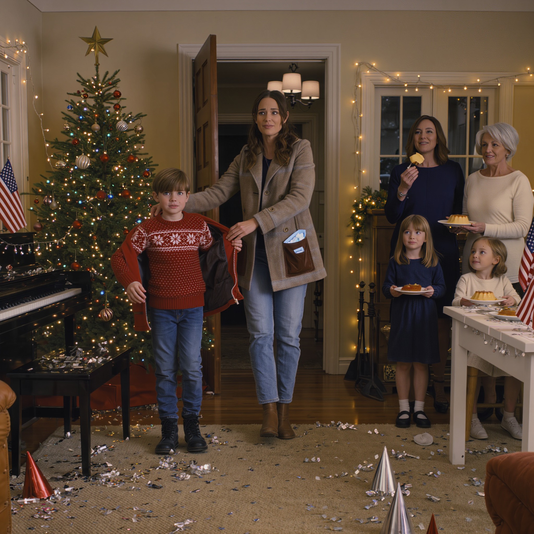 Dit kerstfeest leek een perfecte familiebijeenkomst… totdat een grootmoeder tegen haar tienjarige kleinzoon zei: « Alleen familieleden mogen eten. » Wanneer een alleenstaande moeder uiteindelijk voor haar zoon kiest in plaats van een giftige erfenis, barst de waarheid over geld, erfenis en macht los in een van die rauwe wraakverhalen die je nooit vergeet. Verwacht pijnlijke familieverhalen, brute familiewraak binnen de wet en een familiedrama waarin de schijn belangrijker is dan liefde. Terwijl geheimen over het trustfonds, het vakantiehuisje en de « favoriete » zus aan het licht komen, wordt dit een van die familiedrama’s met zussen in de hoofdrol, waarin weglopen de ultieme wraak is.