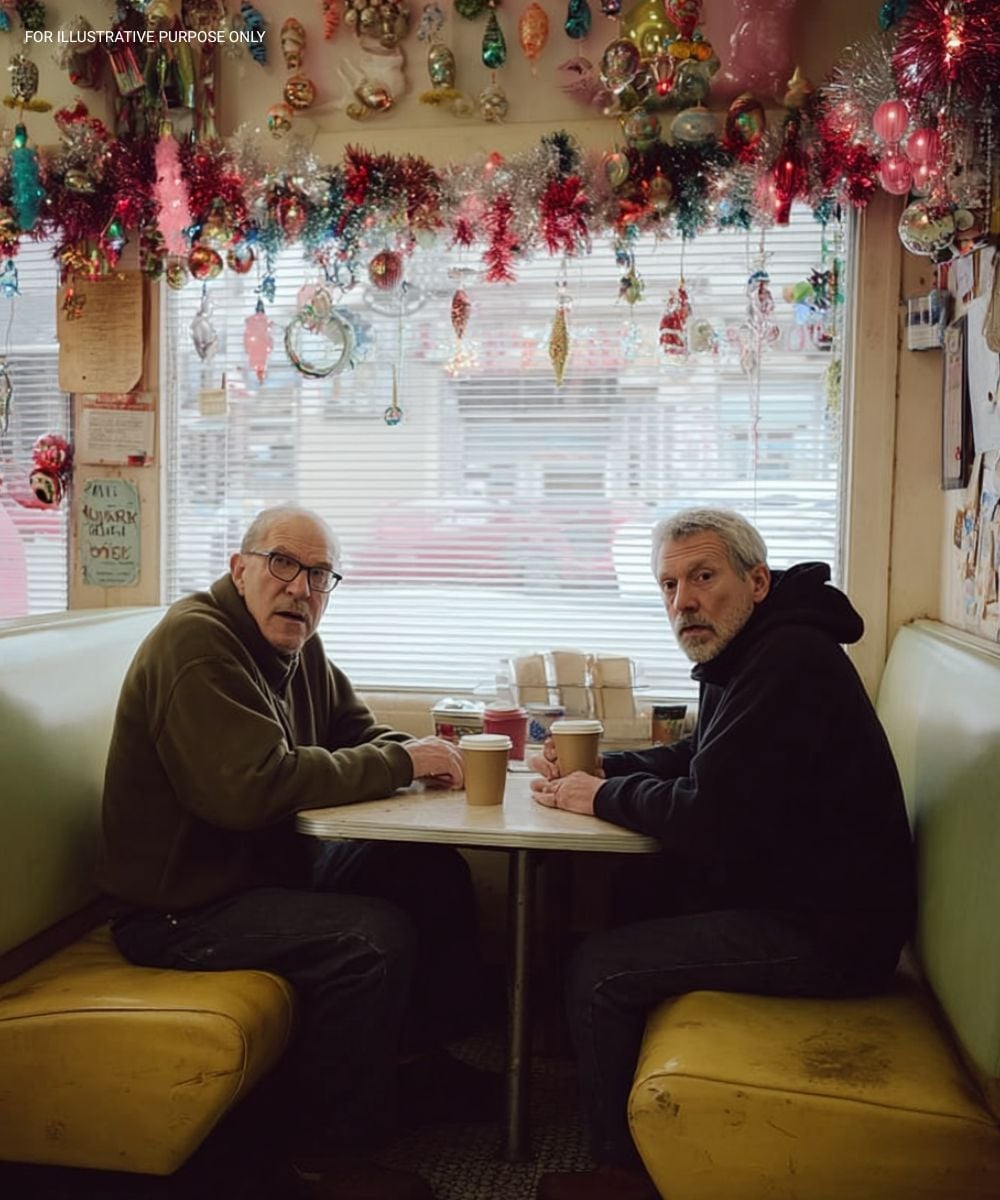 Ted zat al binnen op de hoekbank, zijn jas naast zich en zijn handen om een kopje geklemd. Zijn haar was grijs geworden bij zijn slapen, de rimpels rond zijn ogen waren dieper geworden, maar zijn glimlach herinnerde me meteen aan wie we waren.