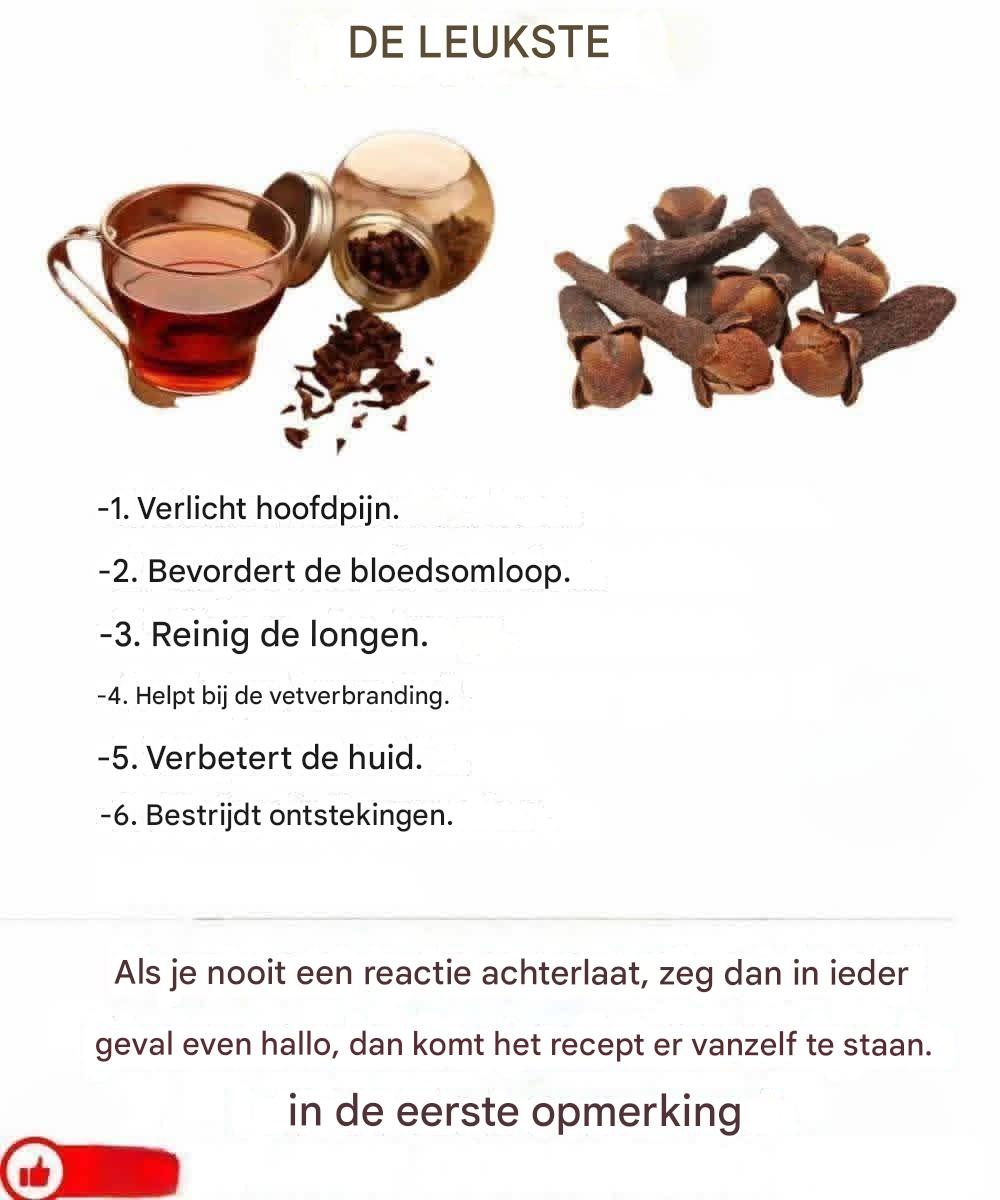 Een van de meest rustgevende manieren om te genieten van de heilzame werking van kruidnagel is door kruidnagelthee te drinken . Deze kalmerende infusie smaakt niet alleen heerlijk, maar biedt ook diverse natuurlijke gezondheidsvoordelen. Hieronder bespreken we de belangrijkste voordelen en delen we een aantal eenvoudige recepten om zelf te maken, die je vandaag nog kunt uitproberen.