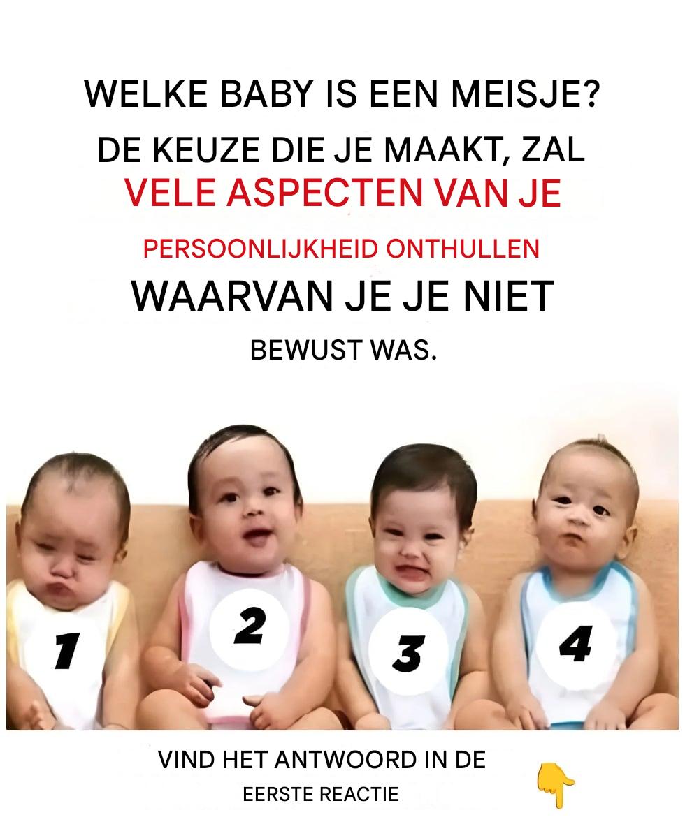 Je ziet een schattige foto: vier baby’s naast elkaar, genummerd van 1 tot 4, en een simpele vraag: “Welke baby is een meisje?” Je kiest snel, bijna zonder na te denken, gewoon “op instinct”. Wat als deze keuze iets meer over je persoonlijkheid onthult dan je beseft? Het is natuurlijk geen wetenschappelijke test, maar het kan een leuke manier zijn om jezelf beter te leren kennen… en een glimlach op je gezicht te toveren.