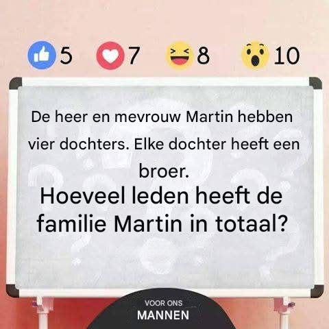 Meneer en mevrouw Martin hebben vier dochters. Elke dochter heeft een broer.