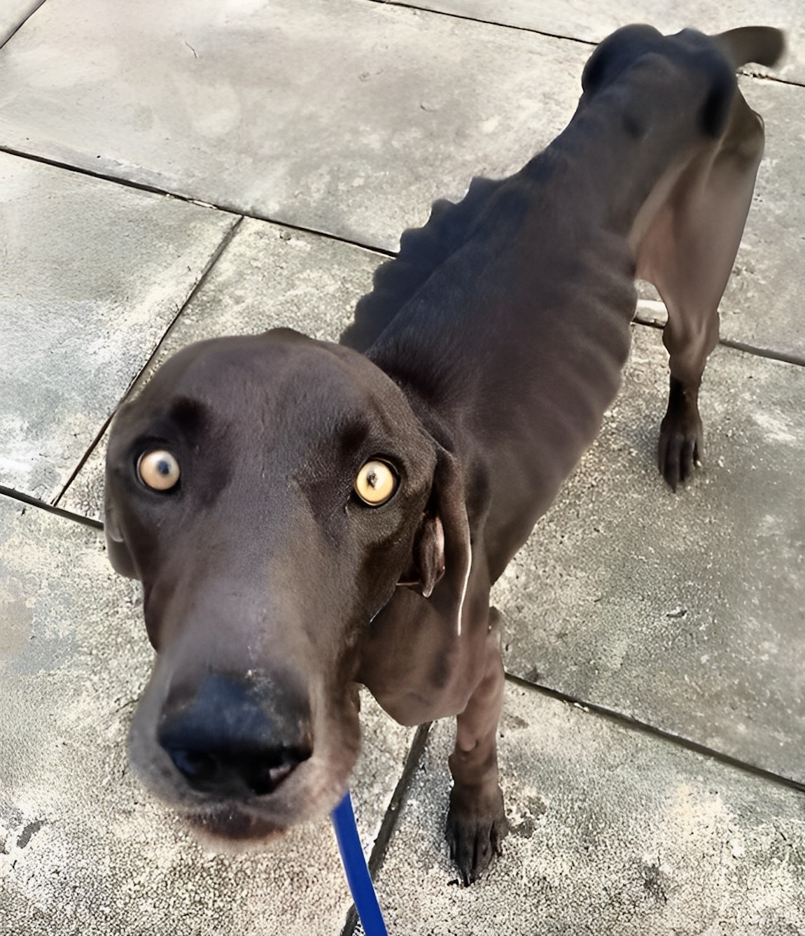Hoewel hij groot van stuk was, woog hij minder dan 20 kilo. Volgens de dierenartsen bevond zijn gewicht zich op een kritiek niveau, en het was opmerkelijk dat de hond überhaupt nog op zijn poten kon staan. Een röntgenfoto toonde aan dat hij om te overleven stenen en takken had gegeten.