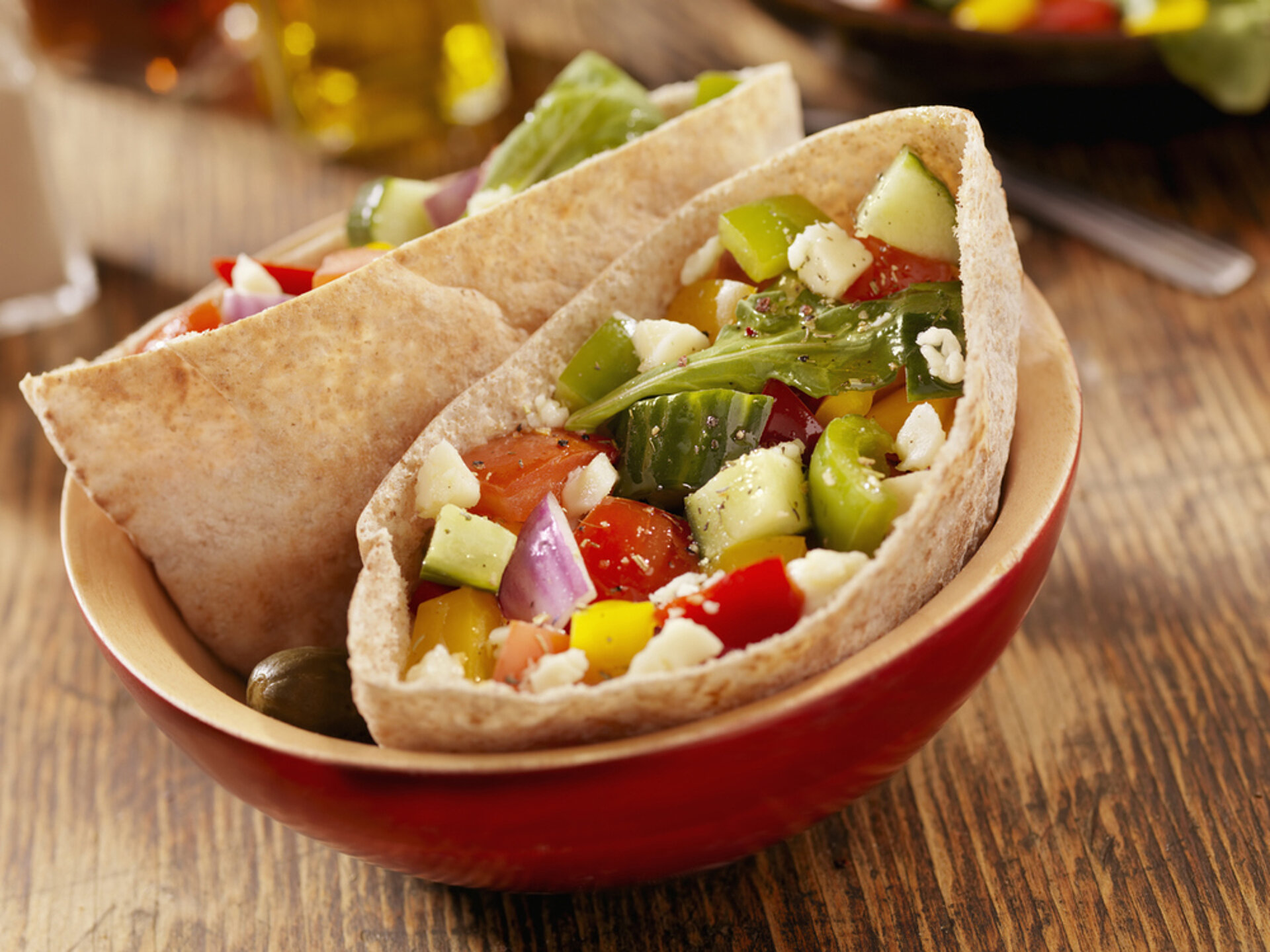 2 grote volkoren pitabroodjes (te koop in de natuurwinkel)