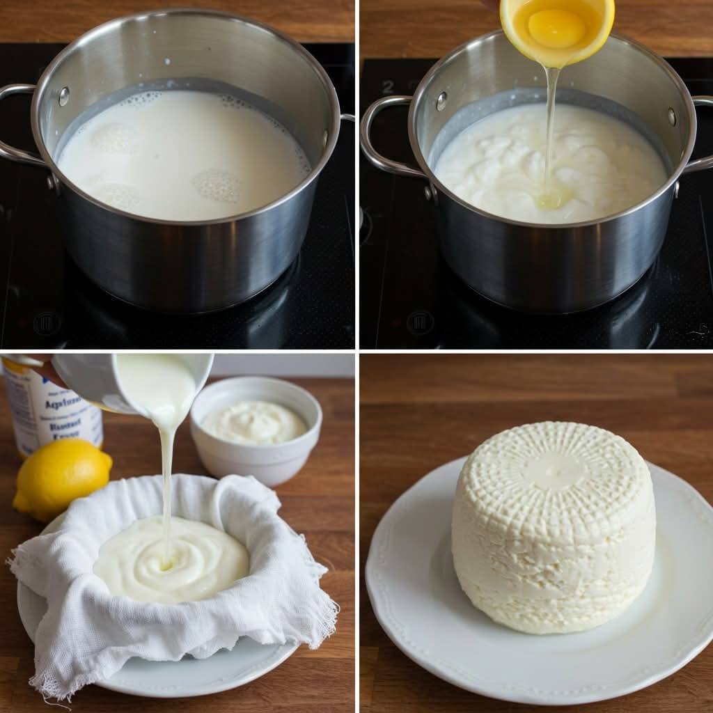 Domowy ser zrobiony z 1 litra mleka, połówki cytryny i 1 jogurtu.